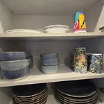 Een ingerichte kitchenette, samen met een eetgedeelte en een eethoek buiten, zijn beschikbaar om te dineren. Self-catering ter plaatse omvat ook een oven en een vaatwasser.
